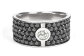 中石にVSのダイヤモンド0.25アップを据えて、周りをブラックダイヤモンドのパヴェで取り巻いてワイルドさを演出しました。